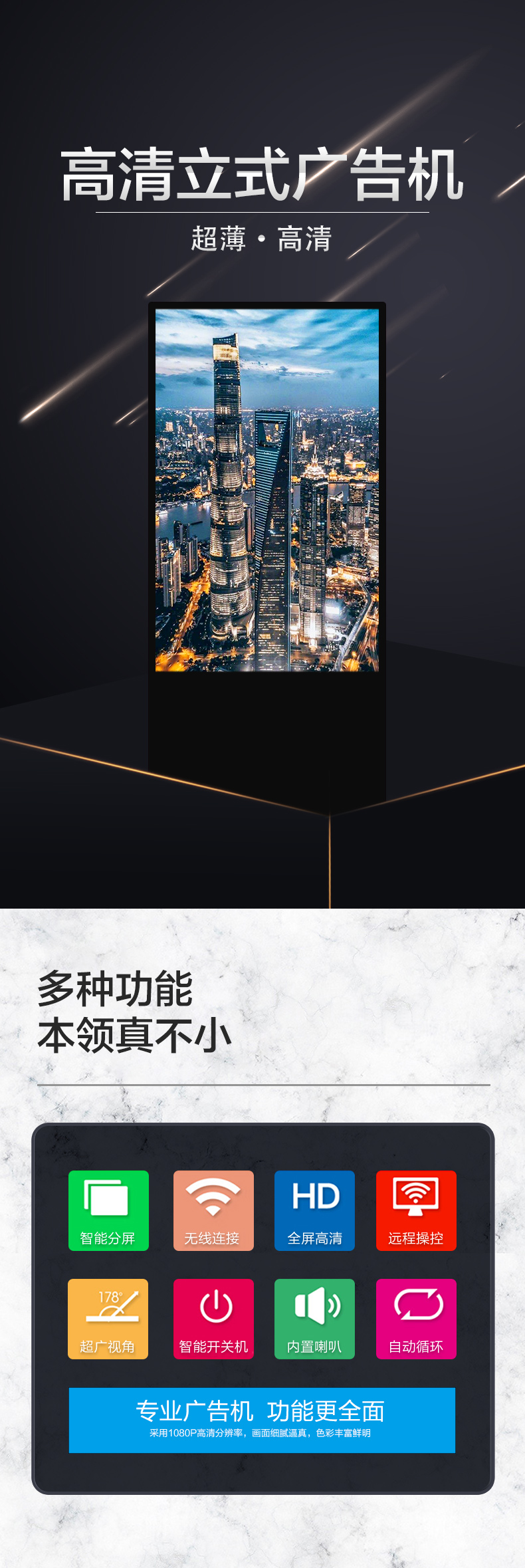 ◆ 支持1080P全高清顯示。