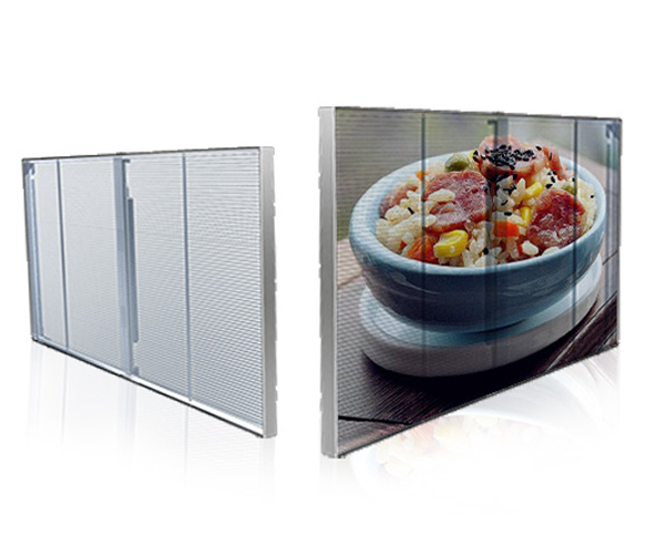 通透率可達(dá)86%,透光,透風(fēng),不影響采光,視線; 通透率可達(dá)70%,透光,透風(fēng),不影響采光,視線; 無鋼結(jié)構(gòu),重量輕,安裝快捷方便,插電即用; 顯示屏模塊化設(shè)計(jì),易于安裝固定在支架上,標(biāo)準(zhǔn)尺寸的模組可以快速被瓶裝成大屏幕; 所有電源和接收卡都隱藏在模組里,電源連接起來更容易; 電腦手機(jī)控制雙支持,屏+數(shù)據(jù)云+APP,WiFi聯(lián)網(wǎng); 刷新率最高可達(dá)9600Hz,性能穩(wěn)定,無閃爍,顯示效果好; 高對比度,超廣視角160°,高亮炫彩,吸引眼球; 采用高集成化設(shè)計(jì),比傳統(tǒng)屏省電50%; 透明led顯示屏 極透、極簡、高亮、超炫、智能 極簡通透的設(shè)計(jì) 通透率可達(dá)95%,透光,透風(fēng),不影響采光和視線;無鋼結(jié)構(gòu),重量輕,安裝快捷方便,插電即用,顯示屏模塊化設(shè)計(jì),易于安裝固定在支架上,標(biāo)準(zhǔn)尺寸的模組可以快速被拼裝成大屏幕,所有電源和接收卡都隱藏在模組里,電源連接起來更容易。 智能、高刷新 電腦手機(jī)控制雙支持,屏+數(shù)據(jù)云+APP,WiFi聯(lián)網(wǎng);刷新率最高可達(dá)9600HZ,性能穩(wěn)定,無閃爍,顯示效果好。高對比度、超廣視角160°,高亮炫彩,吸引眼球;采用高集成化設(shè)計(jì),比傳統(tǒng)屏省電50%。