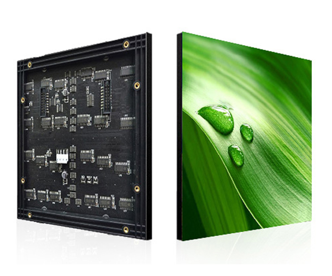 采用高品質(zhì)紅綠藍三種芯片封裝在一顆表貼燈珠里,將表貼燈珠按一定的間距均勻的貼在電路板正面并過焊固定,線路板背面貼有驅(qū)動與控制等電子元器件,再用塑膠套件固定和保護成品線路板,這便是室內(nèi)LED顯示屏