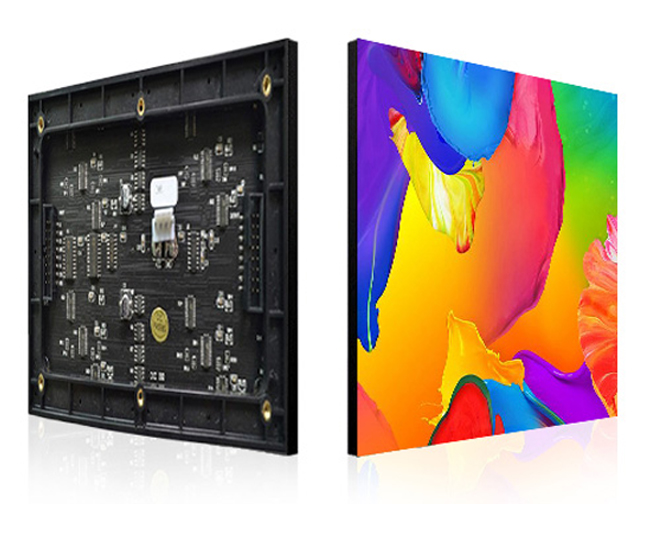 采用高品質(zhì)紅綠藍(lán)三種芯片封裝在一顆表貼燈珠里,將表貼燈珠按一定的間距均勻的貼在電路板正面并過焊固定,線路板背面貼有驅(qū)動與控制等電子元器件,再用塑膠套件固定和保護(hù)成品線路板,這便是室內(nèi)LED顯示屏