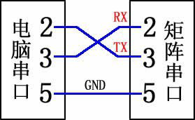 和電腦采用交叉線連接,采用2---3,3---2,5---5,波特率9600,1位停止位,無校驗。