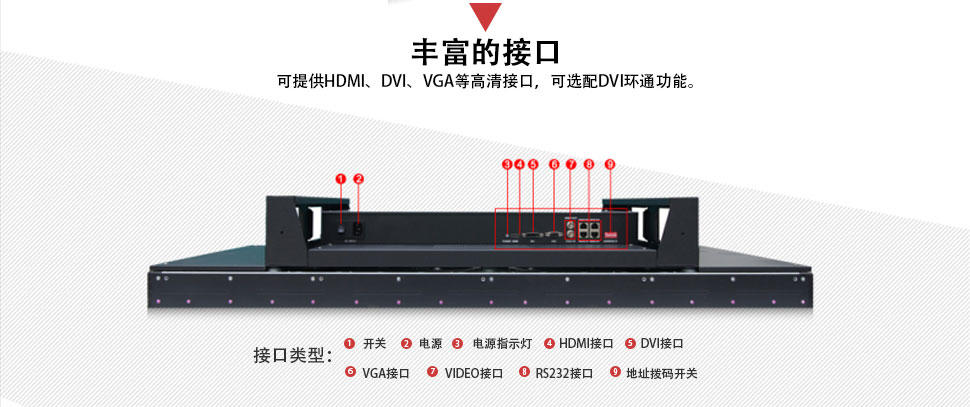 5、內(nèi)置拼接處理器、電源板、多信號(hào)接口板、Rs-232控制板;